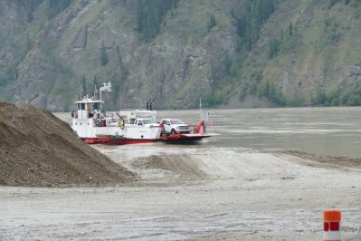Nach weiteren 100 km kamen wir zum Yukon River und setzten mit der Fähre über nach Dawson.