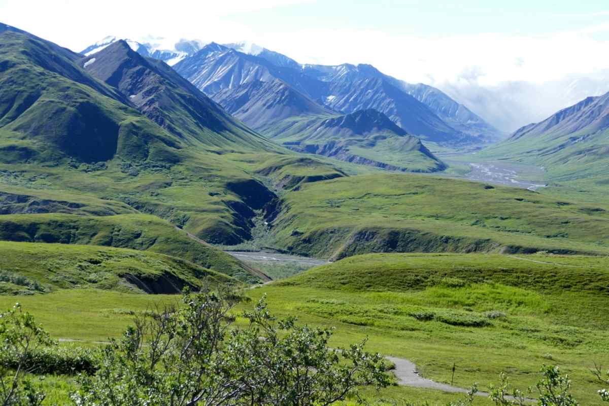 Der Denali Nationalpark und ist etwa 24.585 km² groß. 1917 wurde der Park als Mount McKinley Nationalpark, nach dem damaligen Namen des Berges gegründet. Der Mount McKinley ist mit 6190 Metern der höchste Berg Nordamerikas. 1980 wurden Berg und Park in Denali umbenannt (der Name ist indianischen Ursprungs und bedeutet „der Hohe“) und um knapp 10.000 km² erweitert. Die Parksstraße ist von Mitte Mai bis Mitte September geöffnet und nur die ersten 15 km dürfen mit Privatautos befahren werden; danach geht es nur mit einen Shuttlebus weiter