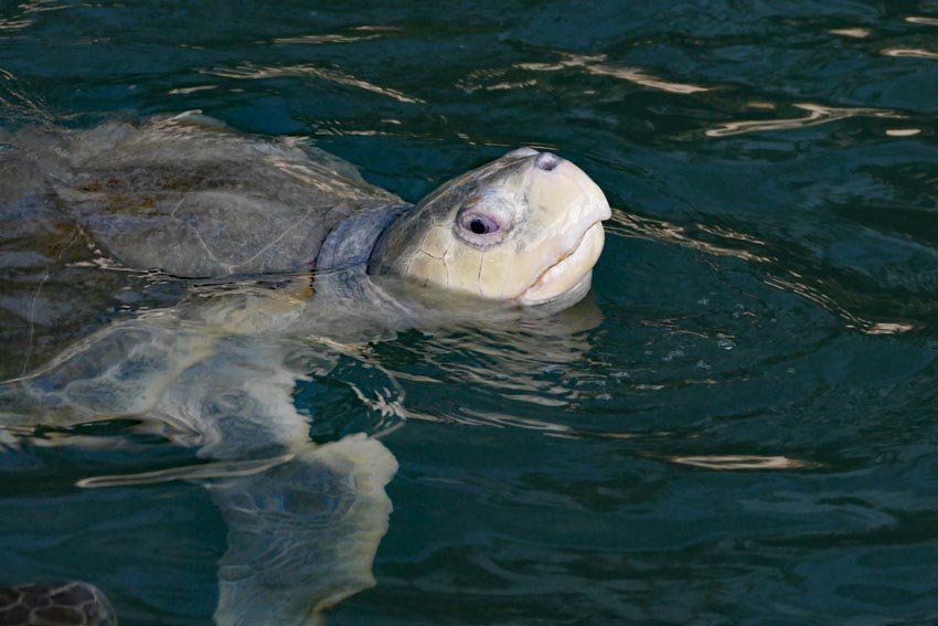 Es wurde erklärt, warum die Turtles hier landen: Hauptursachen sind Bootskollisionen, wodurch der Panzer beschädigt wird und sich sogenannte Bubbles bilden. Darunter sammelt sich Luft, so dass die Turtles nicht mehr tauchten können und Gewichte brauchen, damit das wieder möglich ist.