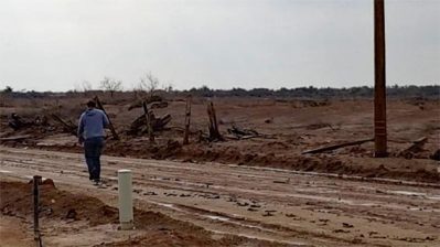 Ich hatte gut 2/3 des Weges geschafft, als ich auf die geniale Idee kam, dass es links neben der Straße, wo ich diese Risse sah, die es typischerweise auf ausgetrockneten Böden gab, eigentlich besser gehen müsste. Also tappte ich rein: erst mit dem linken Fuß, dann mit dem rechten, wieder mit dem….nein, der linke Fuß steckte fest. Ebenso der rechte. Und es ging nichts mehr.